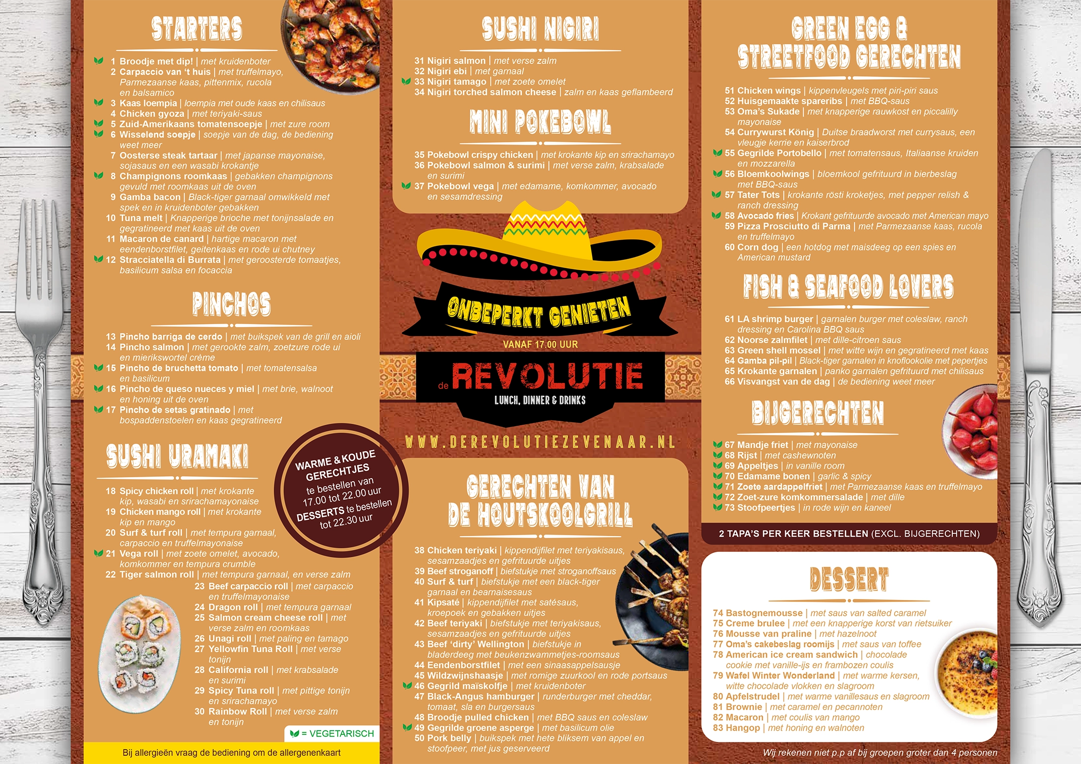 Bekijk hieronder de tapaskaart van De Revolutie Zevenaar.